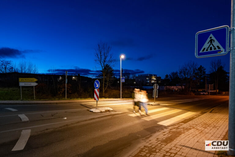 Inzwischen hat sich die Sicherheit nochmals erhöht: die Stadtwerke Arnstadt haben in den letzten Tagen zwei zusätzliche Lichtmasten mit moderner LED-Technik direkt an den Zebrastreifen gesetzt, damit in der dunklen Jahreszeit jederzeit eine gefahrlose Nutzung möglich ist.